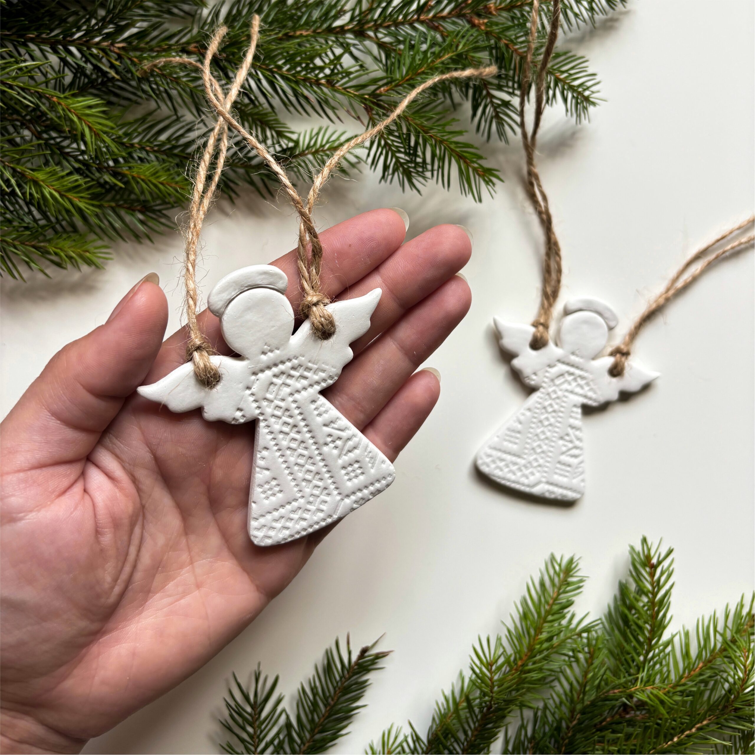 Новорічна іграшка Ангел у вишиванці – символ світла, любові та захисту, виконаний у традиційному українському стилі. Прикраса виготовлена вручну з якісного скульптурного гіпсу та має унікальний авторський дизайн. Поєднання образу ангела з українською вишиванкою надає виробу особливої душевності та робить його не лише святковим декором, а й оберегом. Кожна іграшка стильно пакується, що дозволяє використовувати її як готовий подарунок.