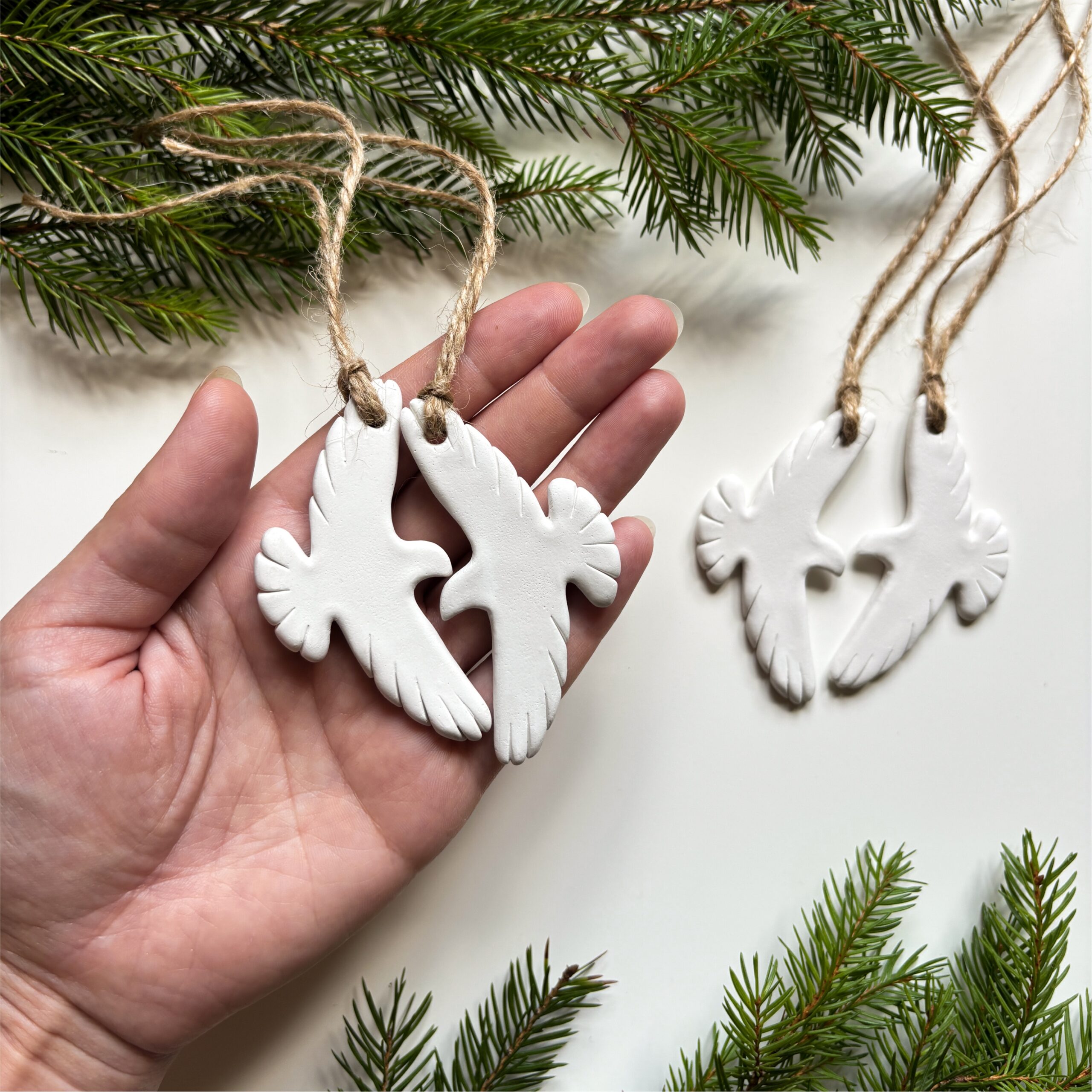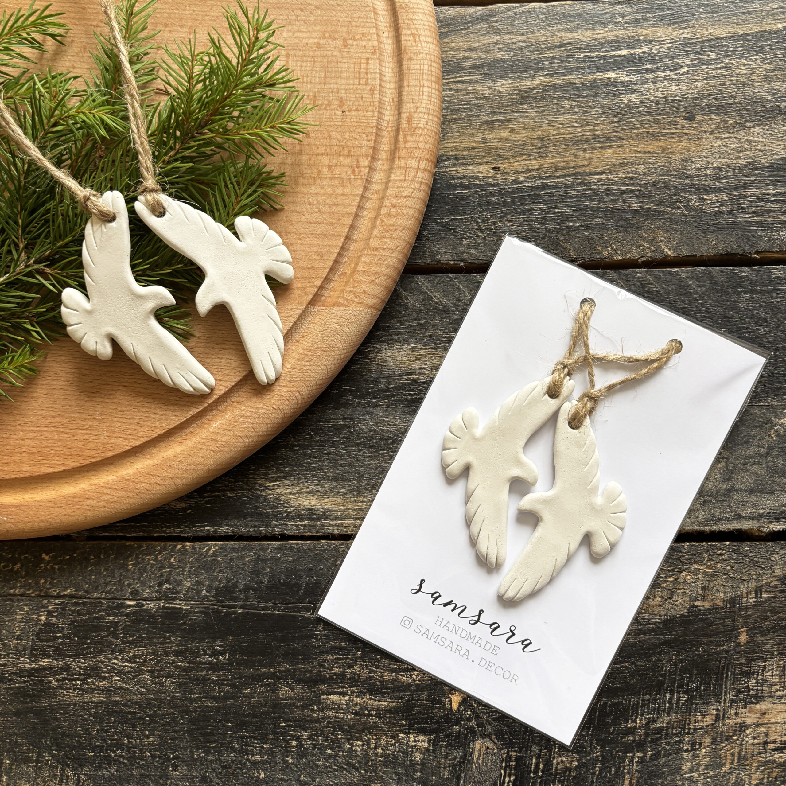 Наші новорічні іграшки виконані в авторському стилі та виготовлені вручну. Вони є втіленням голубів з культового фільму “Один удома”, а також символізують голубів миру та горлиць – знаки добробуту, любові й гармонії. Кожна прикраса має унікальний дизайн, приємну фактуру та стильно пакується, що робить її готовим подарунком.
