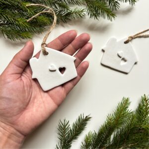 Новорічна іграшка Хатина з серцем всередині – символ затишку та тепла родинного вогнища. Вона створена вручну з скульптурного гіпсу та має унікальний авторський дизайн. Мотив “Дім там, де серце” робить цю прикрасу особливою та емоційно значущою. Це ексклюзивний виріб, кількість якого обмежена, що додає йому унікальності та цінності. Кожна іграшка стильно пакується, готова стати святковим подарунком.