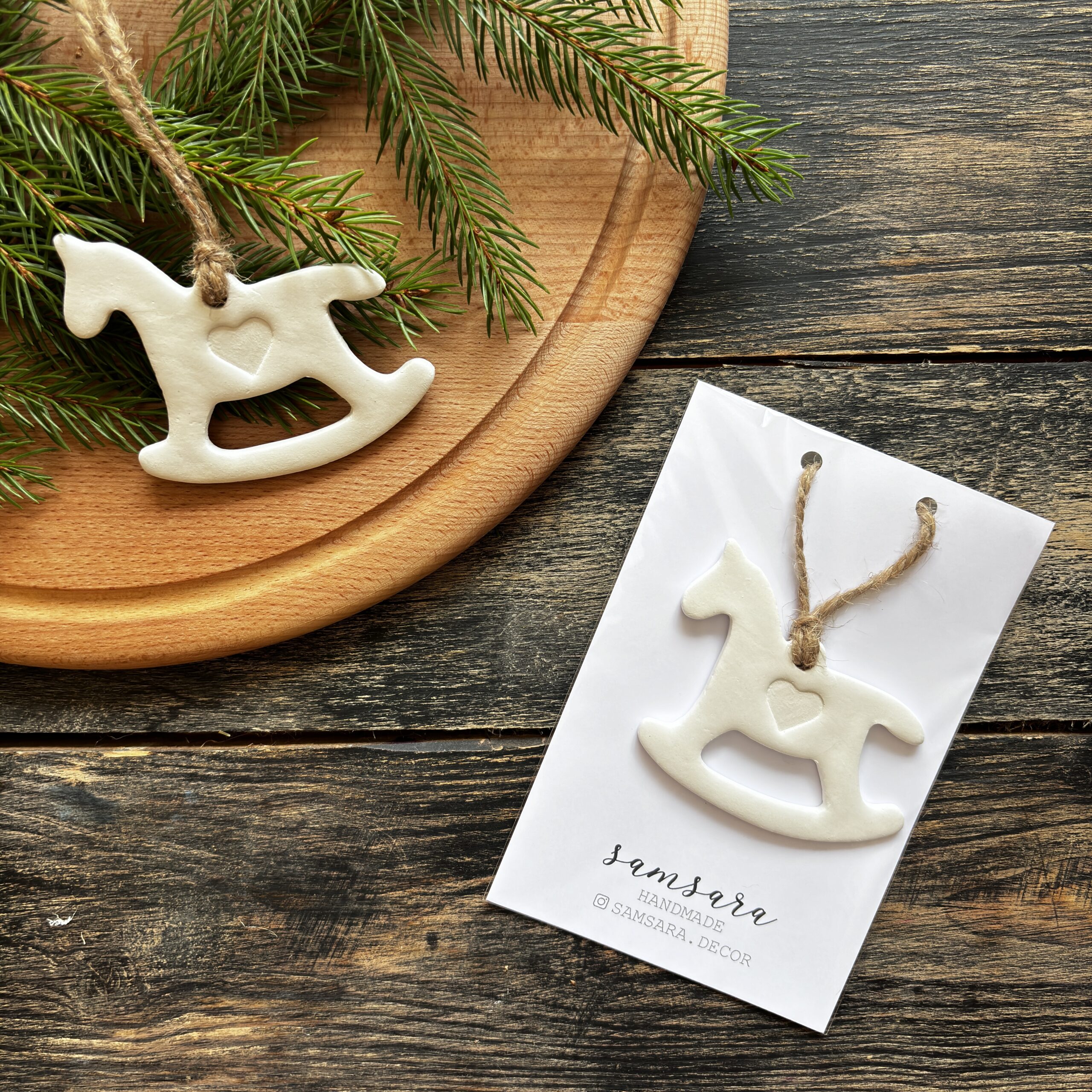 В інтернет-магазині Samsara Decor ви можете купити ялинкову іграшку Коник – гойдалка, а також інші новорічні іграшки та декор ручної роботи. Вона стане яскравим акцентом у святковому інтер’єрі та відмінним варіантом на подарунок на Новий рік, різдвяний сувенір чи святковий подарунок колезі.